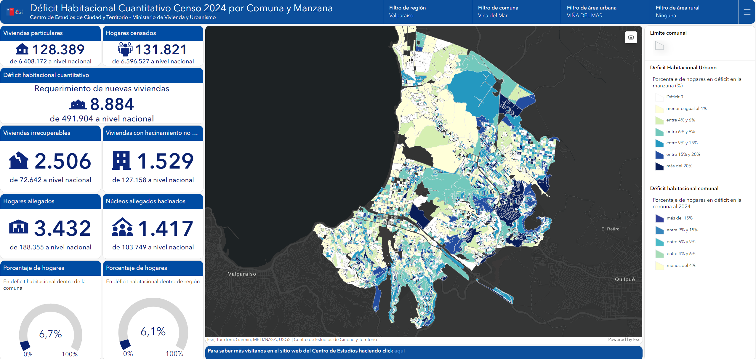 ¿Quieres saber más sobre el Déficit Habitacional?  El Centro de Estudios de Ciudad y Territorio presenta el nuevo visor territorial de Déficit Habitacional Cuantitativo 2024 a nivel de manzana censal.